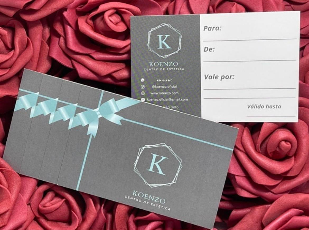 Sorprende y deleita con una tarjeta regalo de nuestro centro de estética Koenzo en Palau-solità i Plegamans. ¡Reserva la tuya hoy mismo y regala bienestar! 🌸✨ Regala bienestar y amor hoy mismo! 💖 Si tienes alguna consulta, no dudes en contactarnos.